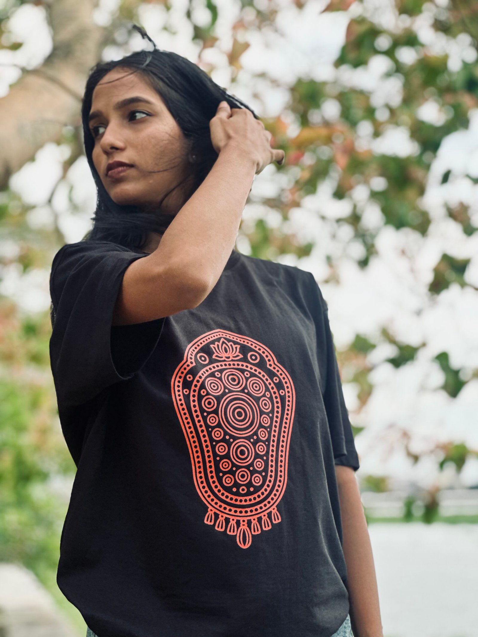 Crafted on a soft, breathable cotton tee, this print is not just fashion—it’s heritage reimagined. The bold yet elegant artwork makes it perfect for casual wear, festive gatherings, or as a statement piece that reflects your love for tradition.