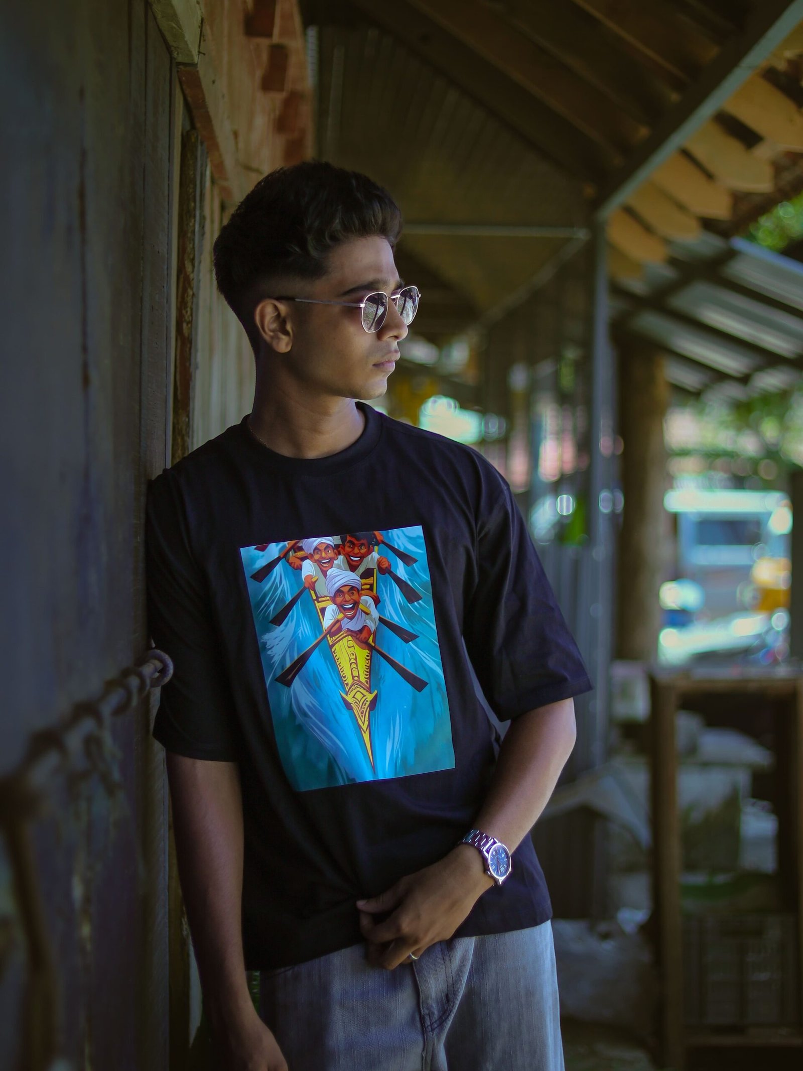 Carry the spirit of Kerala’s vibrant culture wherever you go with this exclusive Vallam Kali printed T-shirt. Inspired by the legendary snake boat race that lights up the backwaters during Onam, the design captures the energy, rhythm, and unity of the rowers as they glide across the water in perfect harmony.